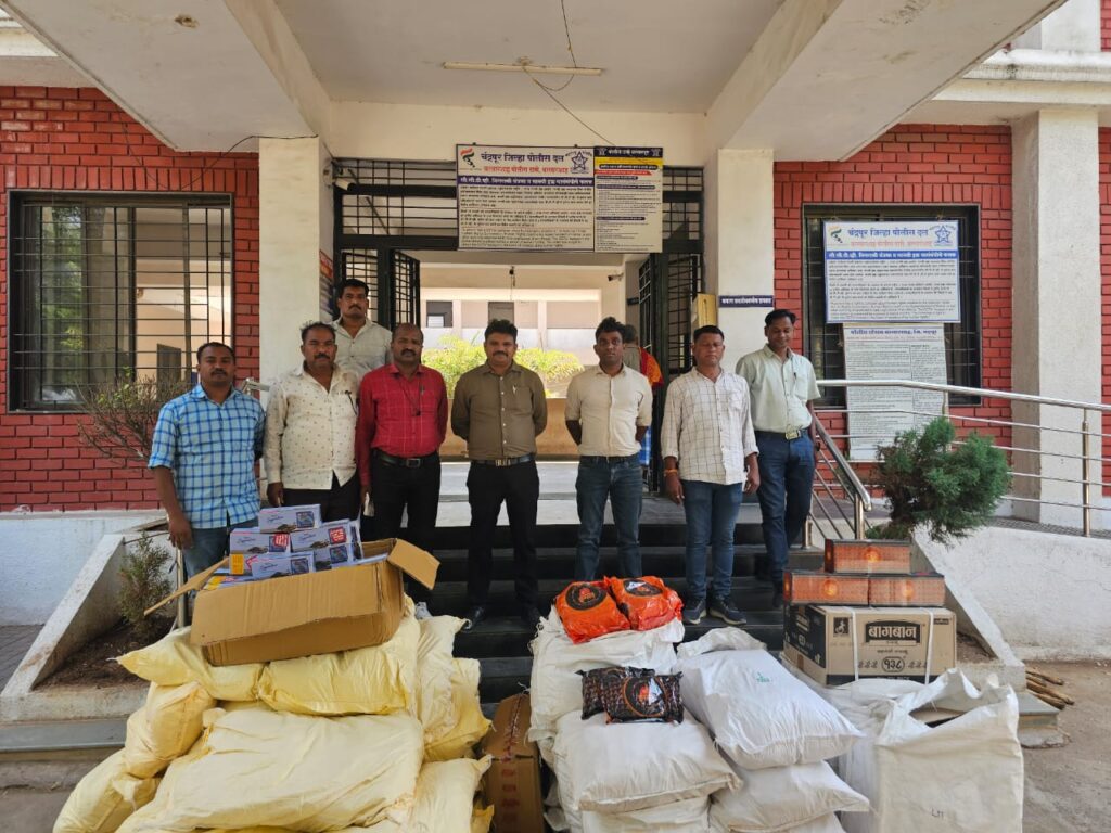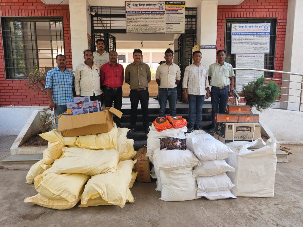 मा. पोलीस अधिक्षक मुम्मका सुर्दशन सा., चंद्रपुर यांचे आदेशान्वये चंद्रपुर जिल्हयामध्ये अवैध धंदयावर कडक कारवाई करण्याचे आदेश स्थानिक गुन्हे शाखा, चंद्रपुर यांना दिले. त्याअनुषगाने पोलीस निरीक्षक अमोल काचोरे, स्थानिक गुन्हे शाखा, चंद्रपुर यांनी वेगवेगळे पथके नेमुन त्यांना अवैध धंदयावर कारवाई करण्याचे निर्देश दिले. दिनांक ०८/०४/२०२५ गोपनिय बातमिदाराकडुन मिळालेल्या माहितीच्या आधारे आरोपी नामे हरीष ठक्कर याने मौजा मानोरा, ता. बल्लारशा, जि. चंद्रपुर येथे किरायाच्या गोडावून मध्ये मोठ्या प्रमाणात सुगंधित तंबाकु साठवून ठेवला आहे अशा खबरेवरुन मौजा मानोरा येथे जावून गोडावून ची झडती घेवून ईगल हुक्का सुगंधीत तंबाकु, होला हुक्का सुगंधीत तंबाकु तसेच मजा १०८ सुगंधीत तंबाकु असा एकुण ५,०६,९१०/-रूपयांचा माल जप्त करून नमुद आरोपी नामे हरीष अंबाराम ठक्कर, रा. विवेकानंद वार्ड, बल्लारशा, ता. बल्लारशा, जि. चंद्रपुर यांचेविरूध्द पोलीस स्टेशन बल्लारशा, जि. चंद्रपुर येथे अन्न सुरक्षा आणि मानके अधिनियम अन्वये गुन्हा नोंद करण्यात आला.